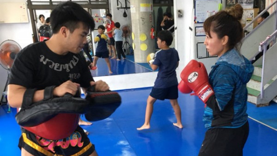 タイミュージックに合わせ、キックボクシングやムエタイの動きを取り入れた有酸素運動です(10分〜15分)。